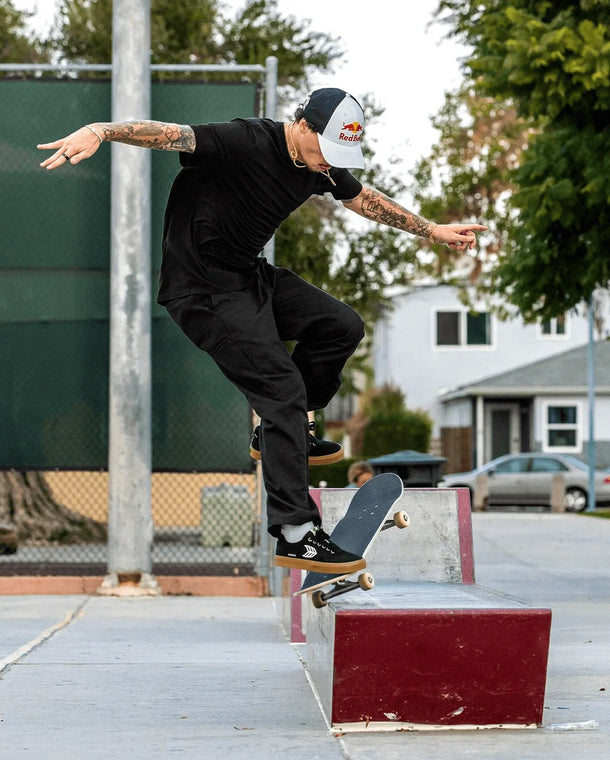 Crafted for optimal performance, boardfeel, and stability, the magic of NAIOCA Pro is all in the durable details. Not only did we add a double layer of rubber to our enhanced foxing; we snuck in extra reinforcement underneath the toe box, cut from premium suede sourced from Leather Working Group Gold Rated suppliers.